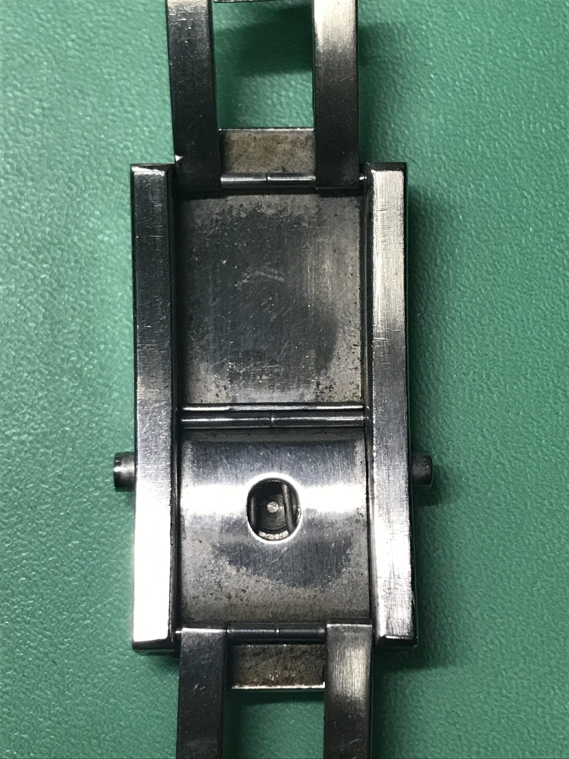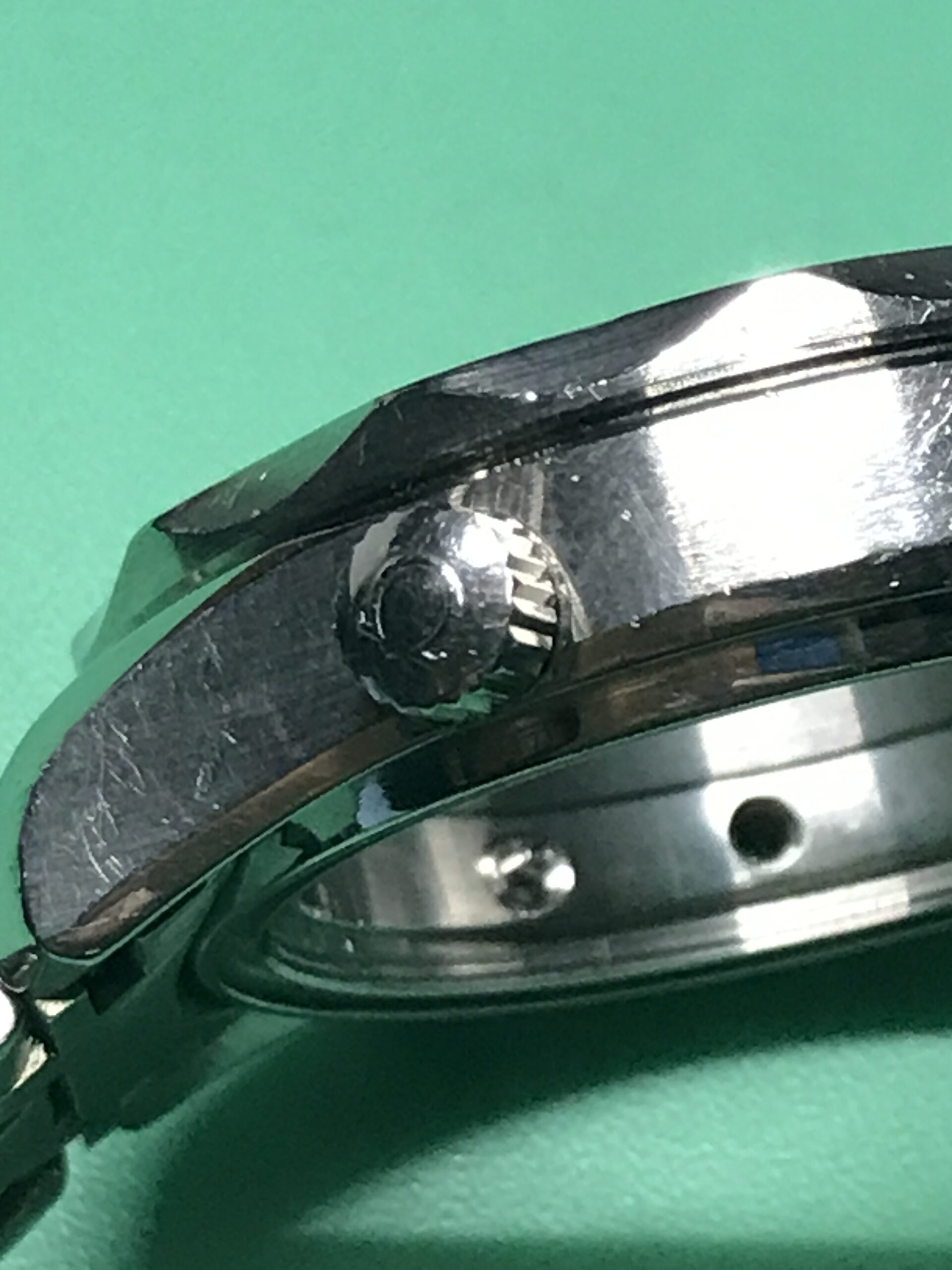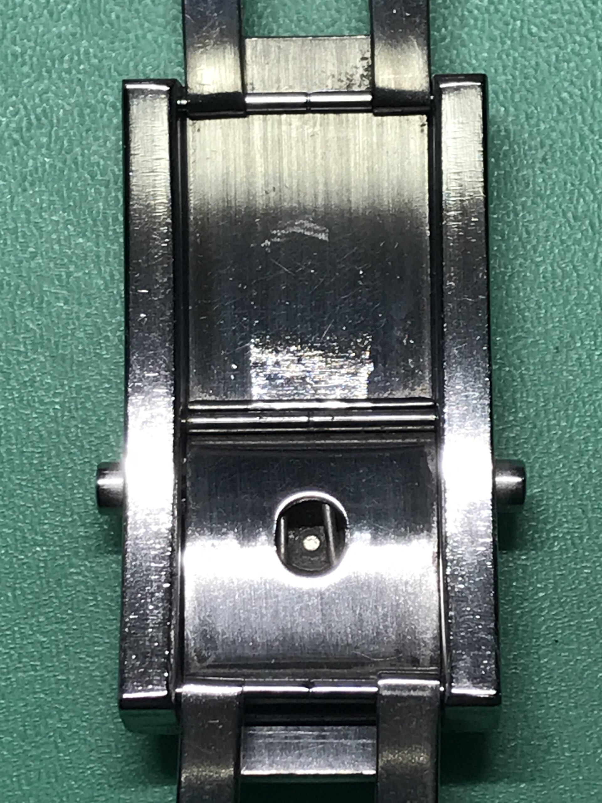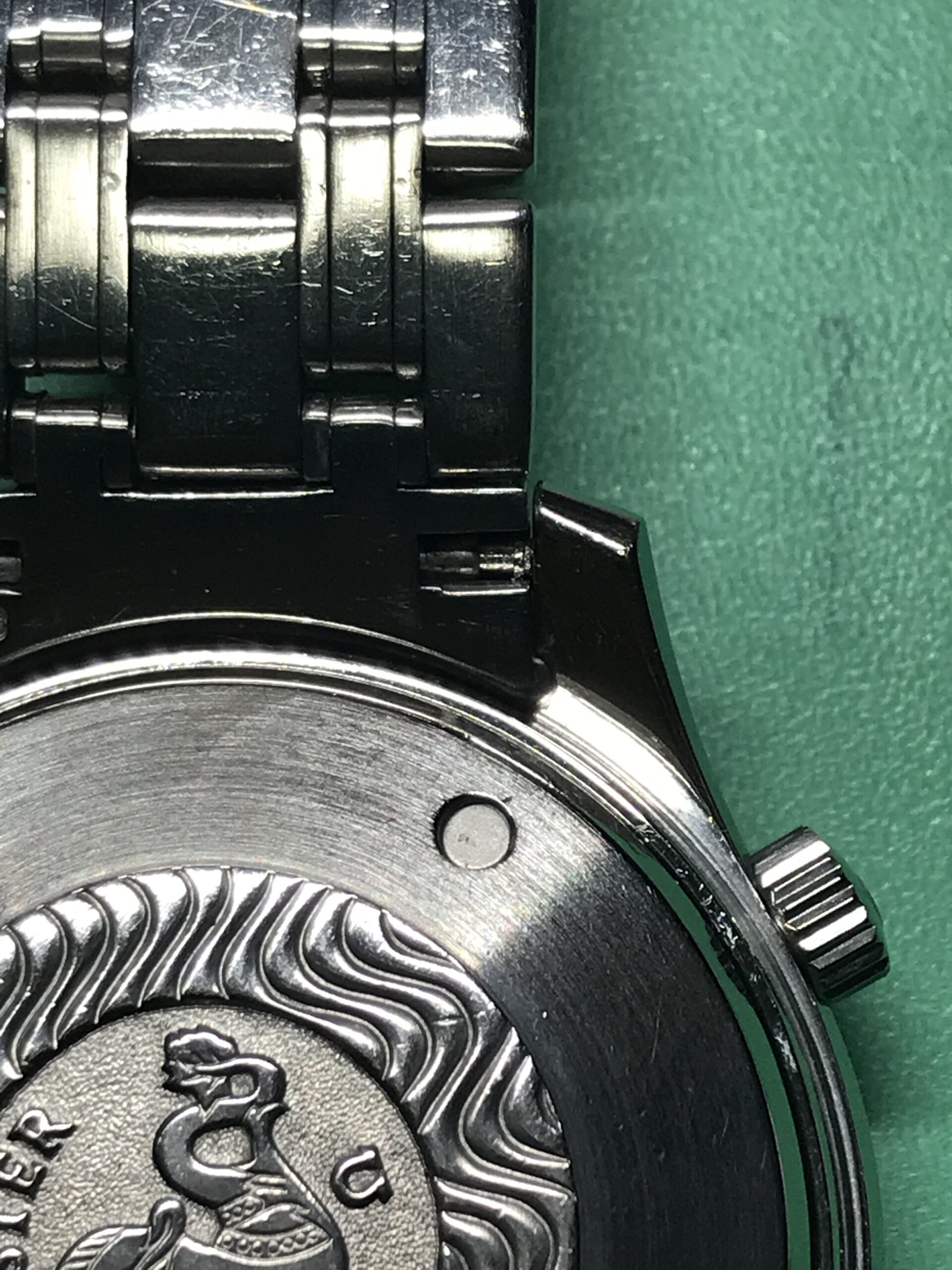 長く使用されて見えたため、ケース、ブレスレットには細かいキズが多く見られましたが、今回は機械のオーバーホールを中心にということで、そちらには手を加えておりません。クリーニングにて細かな部分の汚れは落としていますが、再研磨すればより綺麗な状態に戻すことも可能です。逆に好みによっては、細かなキズがそのままあり相応の使用感があるのも、正しい佇まいかもしれません。