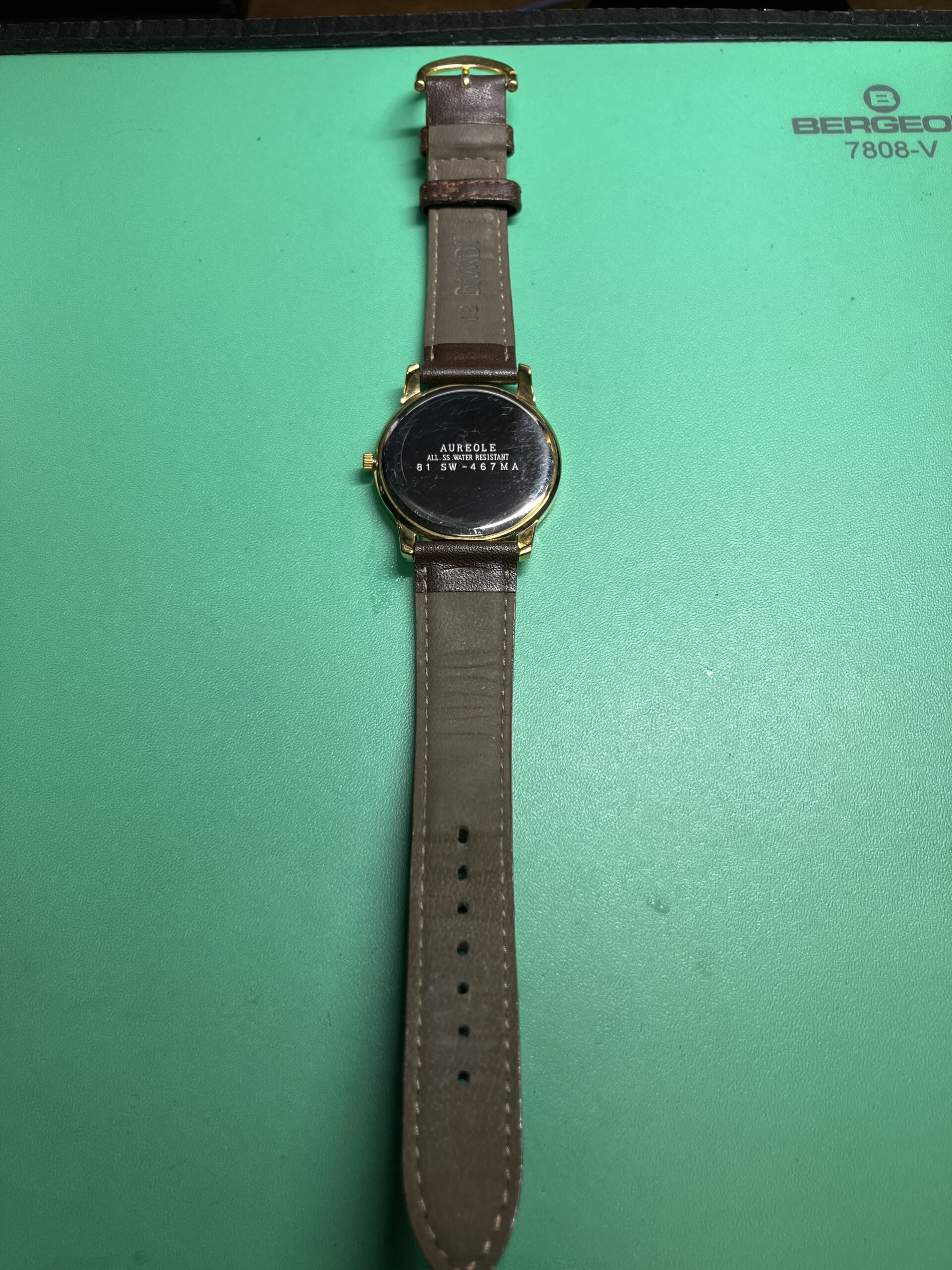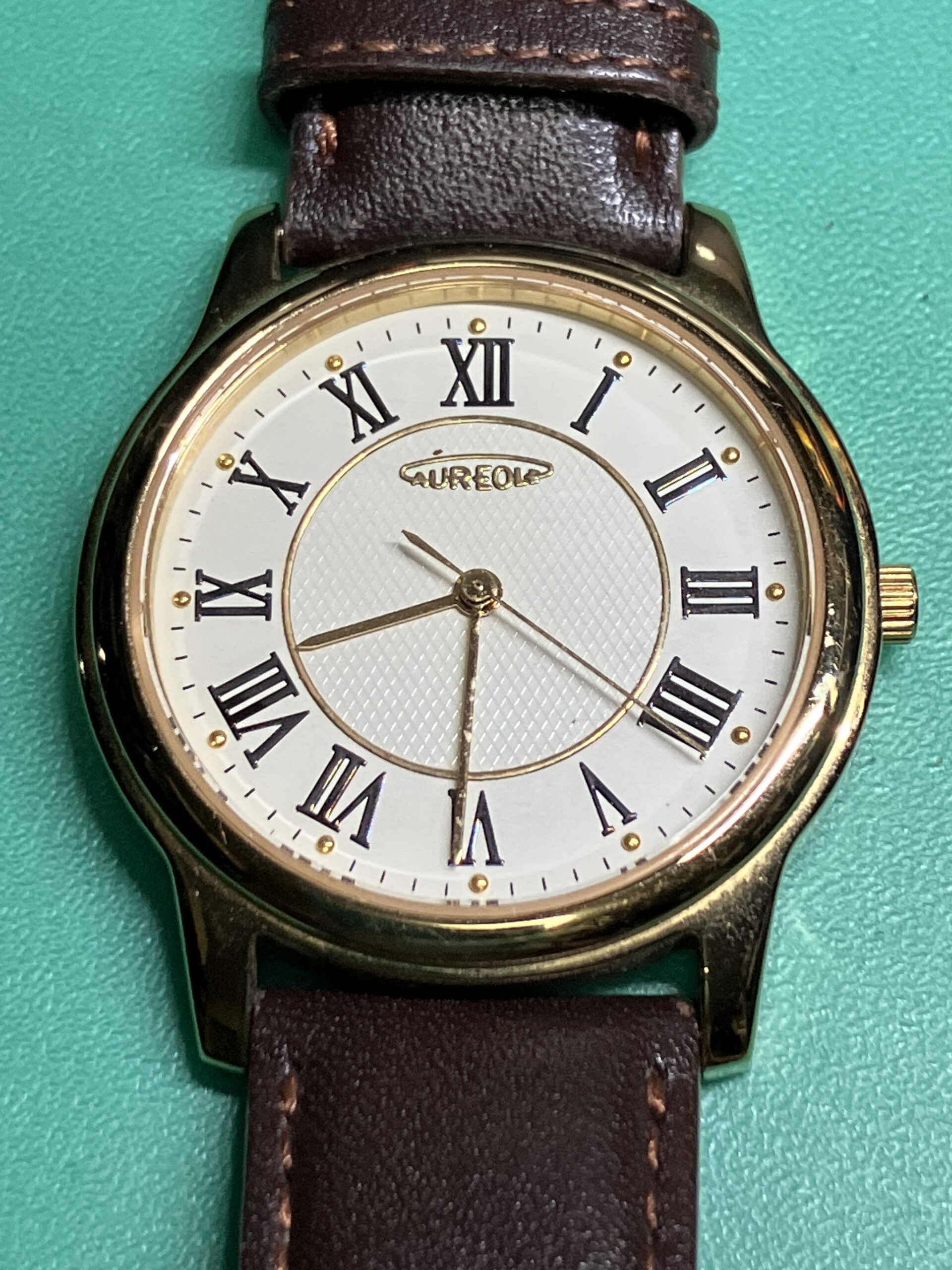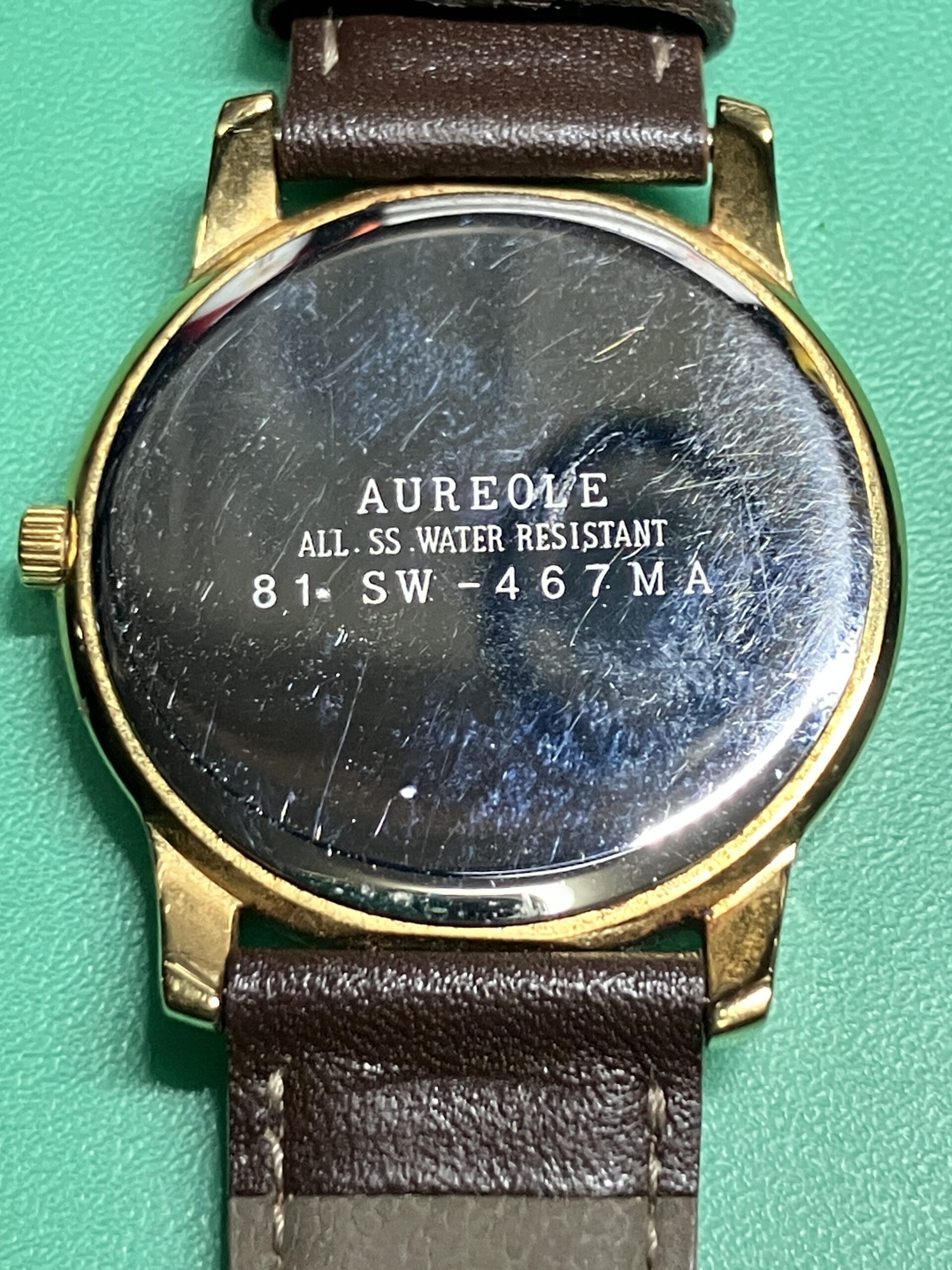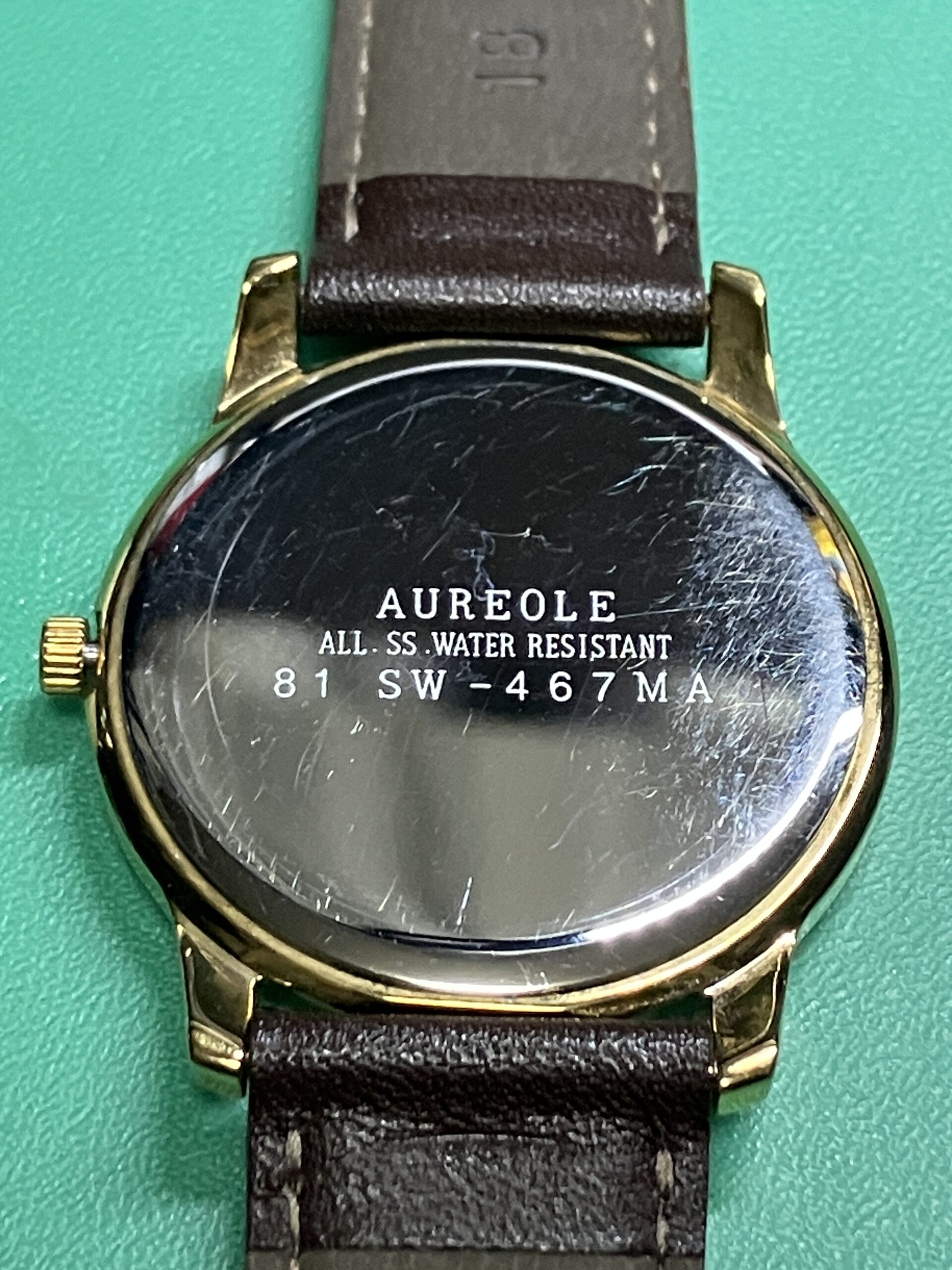 今回お預かりした時計は、オレオール(AUREOLE) SW-467MA、ルーツは20世紀初頭のスイスの時計ブランドで、「Auréole(オレオール)」とはフランス語で“後光・光輪”を意味し、気品あるブランド名として使われていました。
