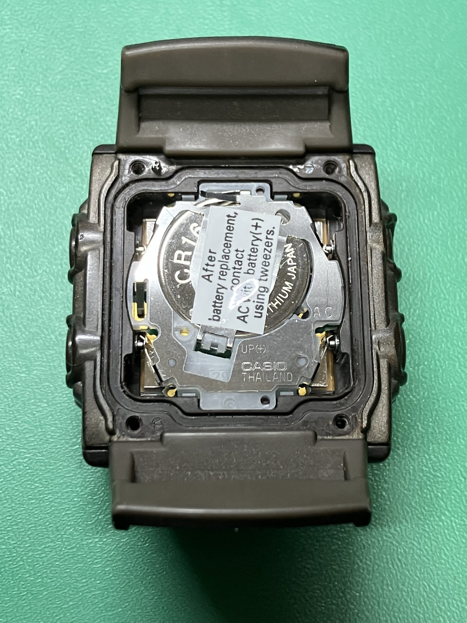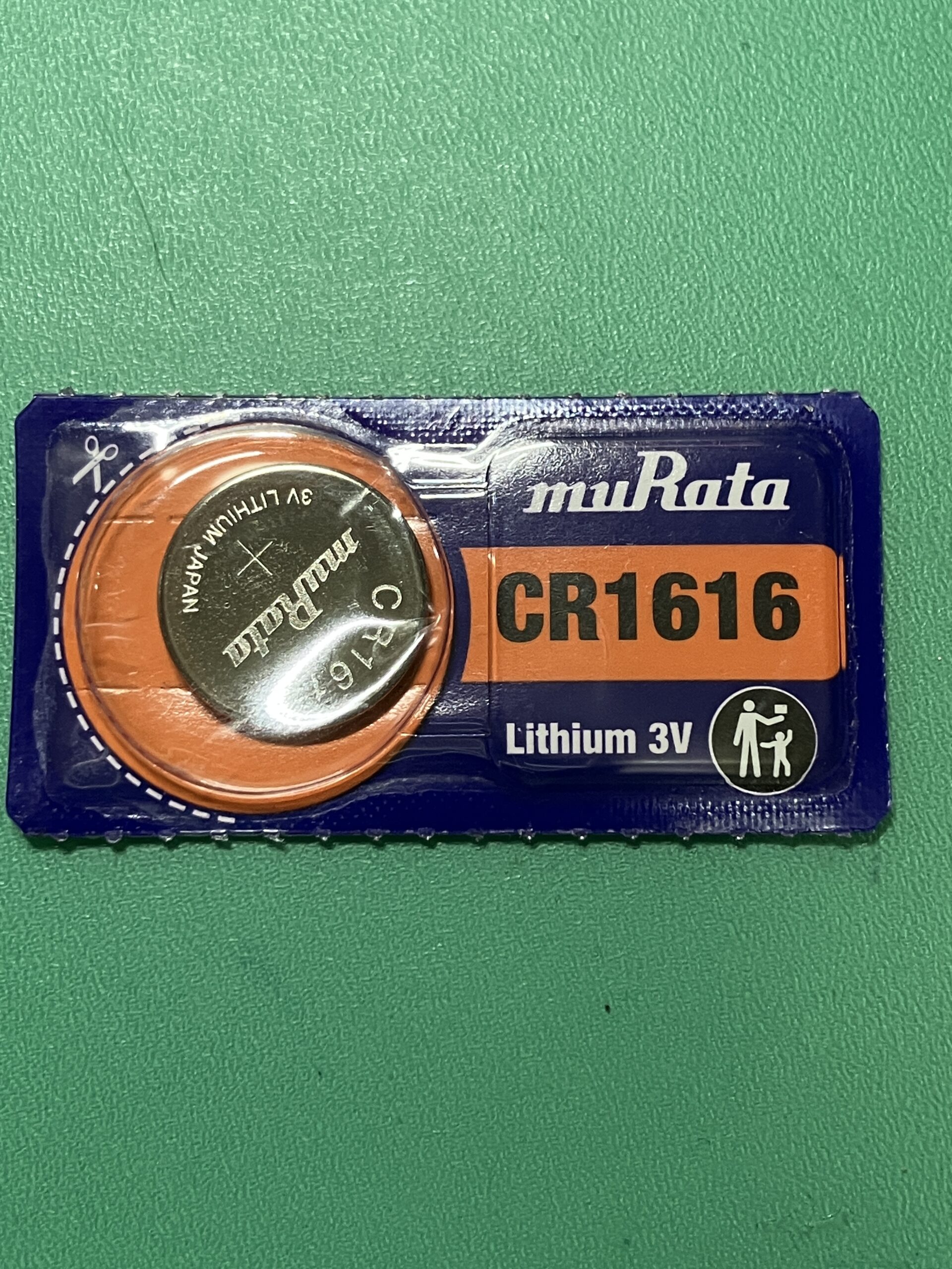 不動状態でしたが、電池の交換で作動しました。電池は3VのCR1616リチウム電池を使用しています。