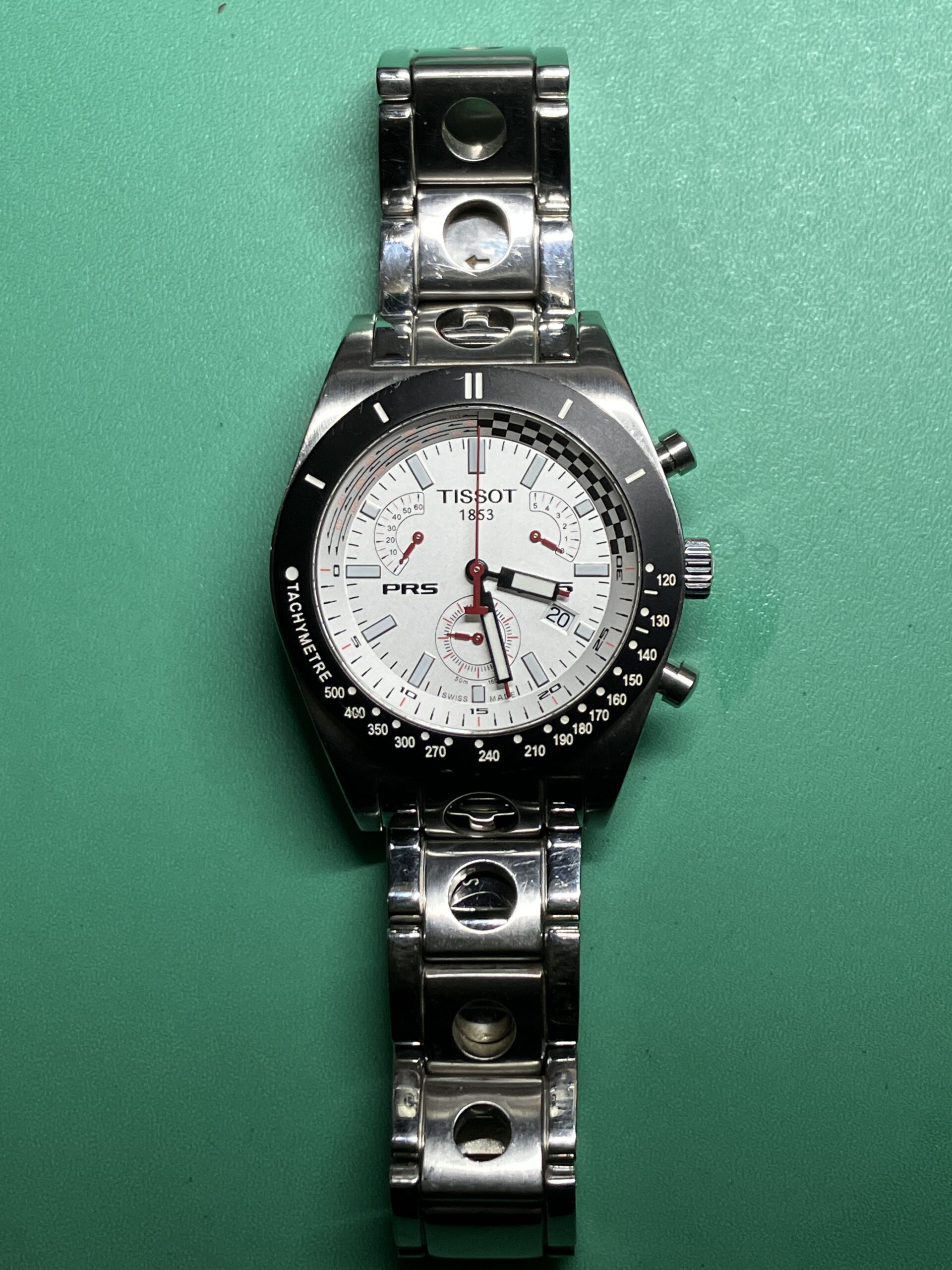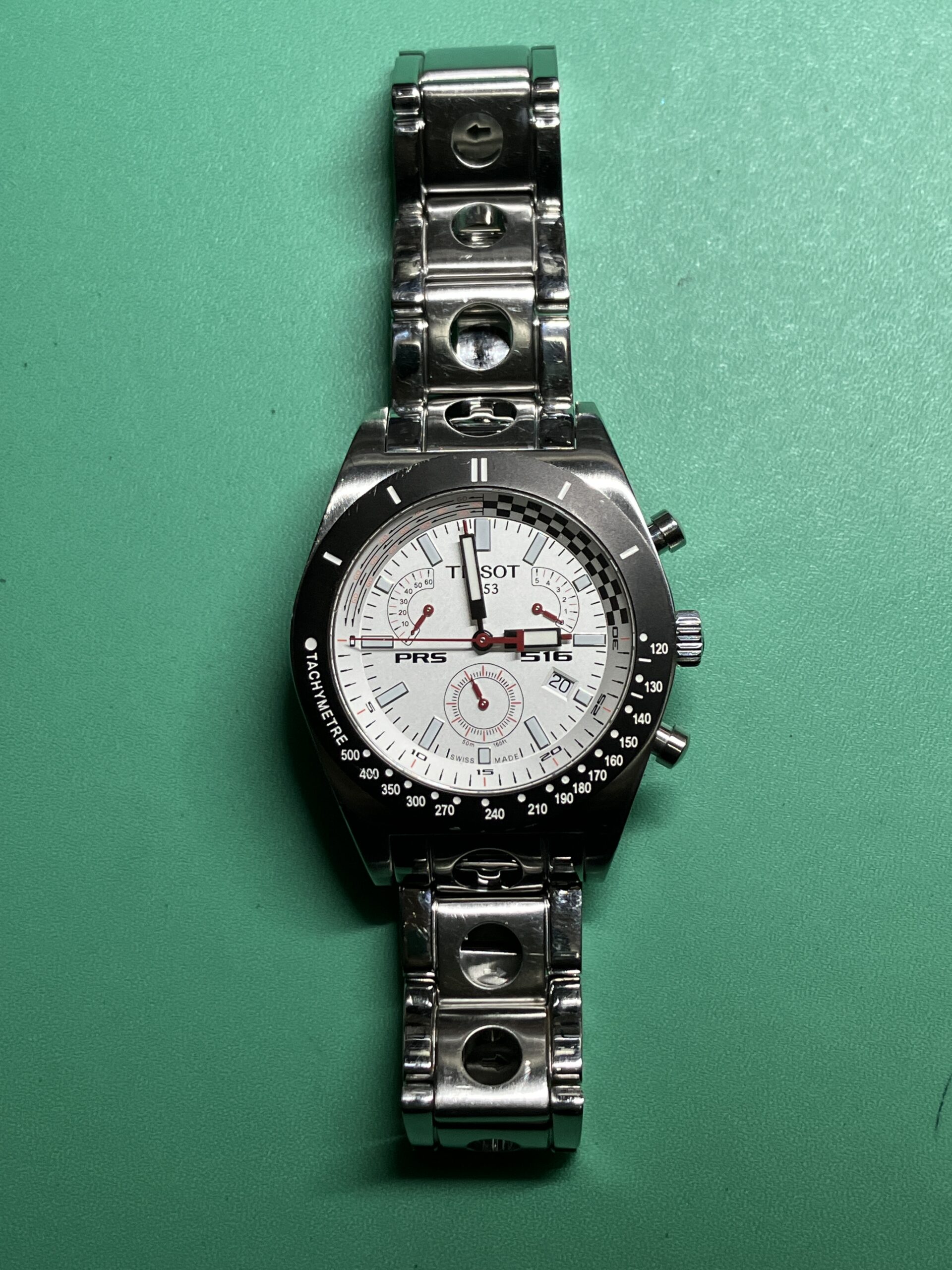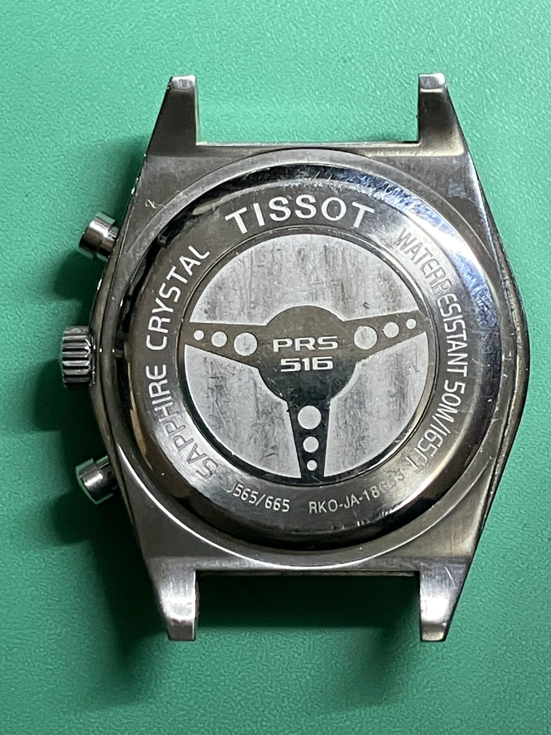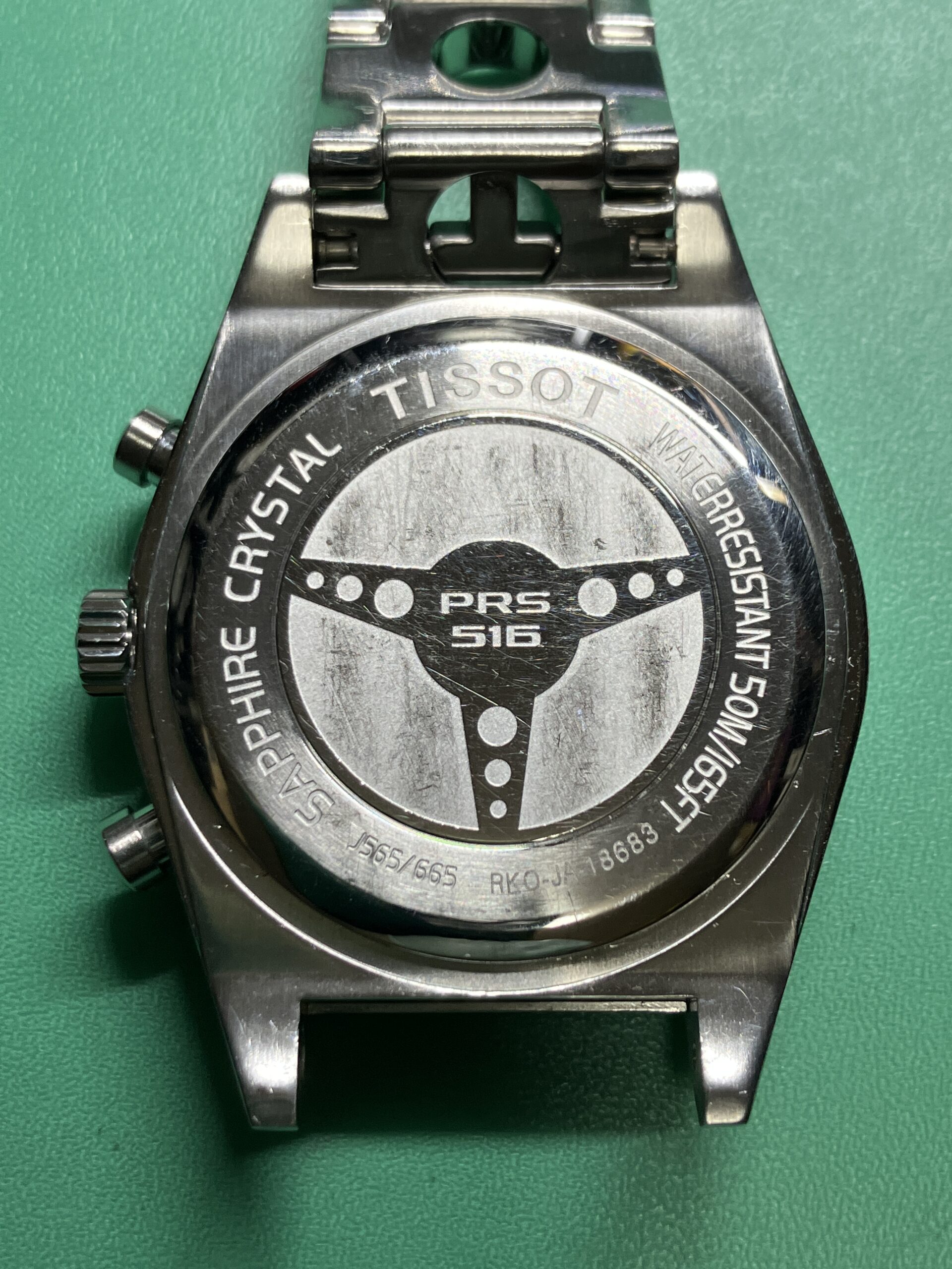 今回お預かりした時計は、ティソ(TISSOT) PRS 516 レトログラード クロノグラフでした。PRS516は、1960年代のティソの名作スポーツウォッチ、PR 516をオマージュした時計ですね。